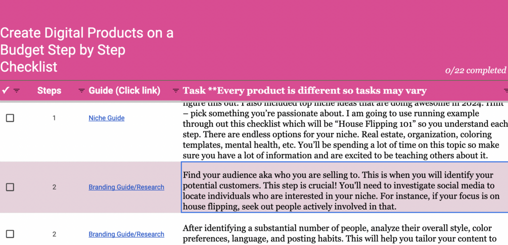 Start & Scale a Low Cost Digital Product Business & Maximize your Profits! is a one-of-a-kind course designed to teach you how and where to sell digital products without overspending. This course includes an editable Step-by-Step Digital Product Checklist to keep you organized and ensure you know exactly what to do next. You'll also receive 12 comprehensive How-to Guides covering digital products and marketing strategies.